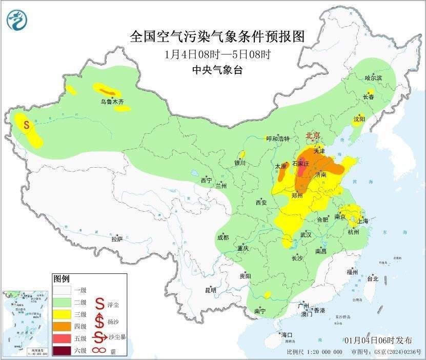 r4日上午,区域中南部大气扩散条件一般,山西中南部等地有轻至中度霾。4日午后起,受冷空气影响,上述地区霾天气逐渐减弱消散。