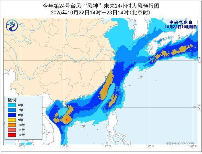 大风预报:受冷空气和“风神”的共同影响,22日14时至23日14时,台湾海峡、台湾以东洋面、巴士海峡、南海西部、南海东北部和中东部、东沙群岛及西沙群岛附近海域、北部湾、琼州海峡、东海、黄海、渤海海峡以及山东半岛沿海、江苏沿海、上海沿海、长江口区、杭州湾、浙江沿海、台湾沿海、福建沿海、广东沿海、广西沿海、海南岛沿海将有6-8级大风,阵风9-10级,其中东海西南部、台湾海峡、巴士海峡、台湾以东洋面、浙江南部沿海、福建沿海、台湾沿海、海南岛沿海、南海西北部和中西部、北部湾的部分海域或地区的风力有9-12级,阵风13-14级。