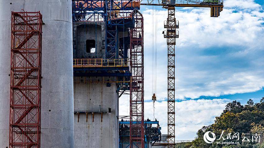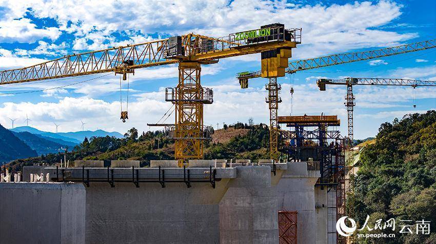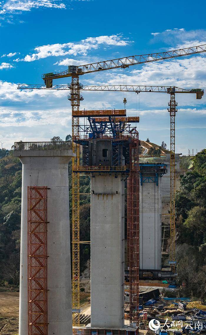 云南文(山)蒙(自)铁路新回龙特大桥建设现场。熊平祥摄人民网文山1月4日电 (记者徐前)新年伊始,万象更新。在由中铁大桥局承建的云南文(山)蒙(自)铁路新回龙特大桥建设现场,塔吊旋转、车辆穿梭,建设者们争分夺秒推进工期。